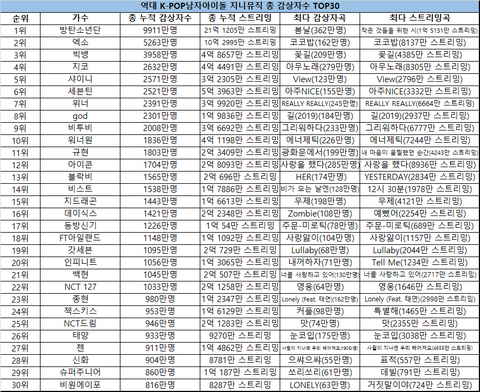 총 누적 스트리밍 : 5억 3963만 스트리밍