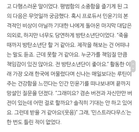 이제서야 현생 끝내고 차분히 윤기 인터뷰 읽어보는데