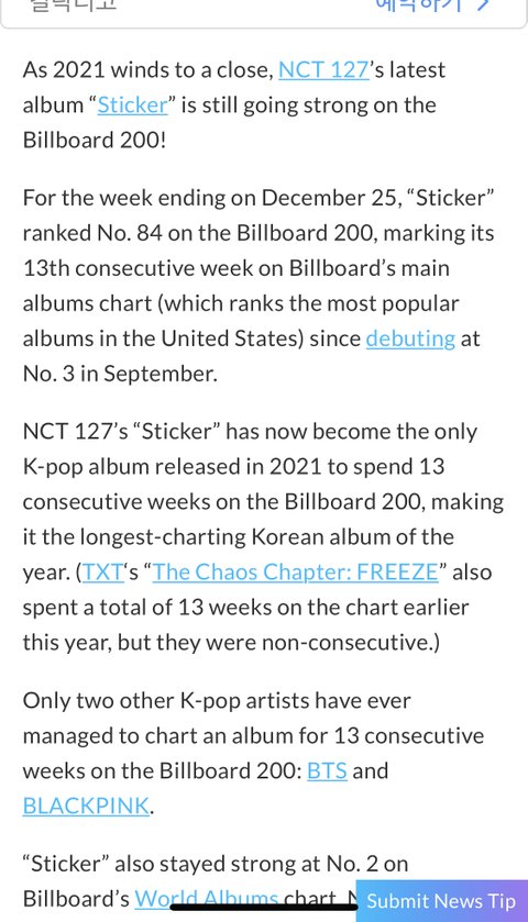 Nct 127 13주째 빌보드 200 차트인