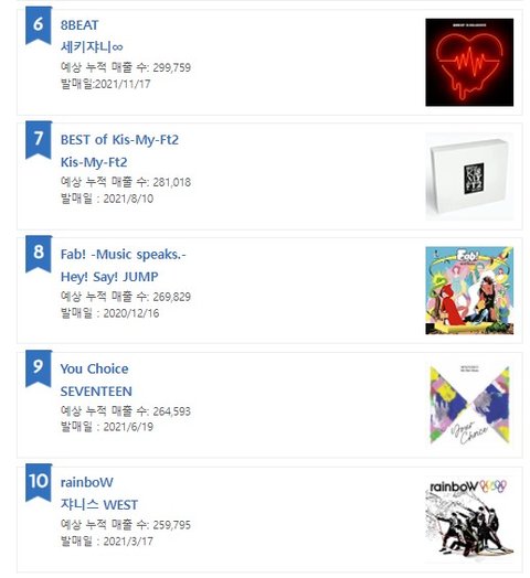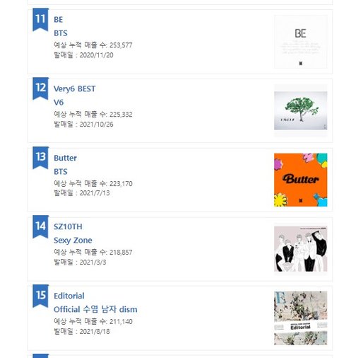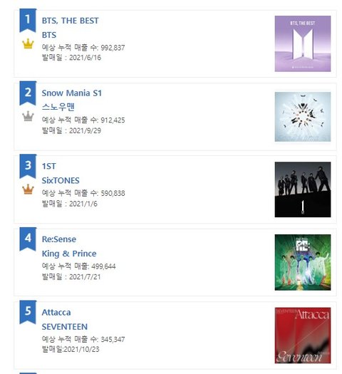 2021년 오리콘 연간 앨범판매량 순위