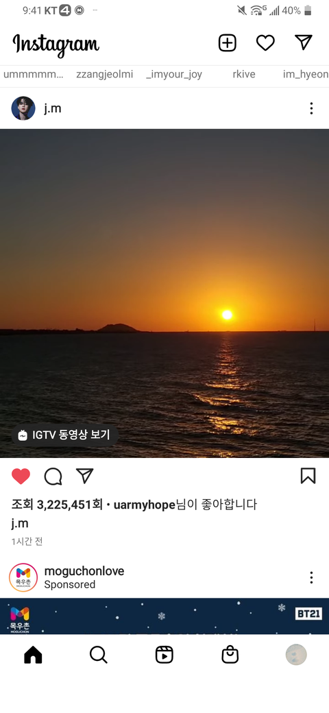 지민이 인스타 감성 없는듯 하면서 있는거 같다
