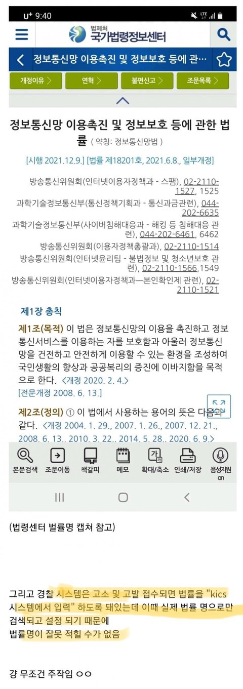 경찰 시스템은 고소 및 고발 접수되면 법률을 "kics 시스템에서 입력" 하도록 돼있는데 이때 실제 법률 명으로만 검색되고 검색된 법률 목록 중에서 클릭해서 입력하도록 설정 되기 때문에 법률명이 잘못 적힐 수가 없다고함