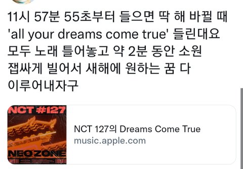 12월 31일 23시 nn분에 틀면 1월 1일 되는순간에 가사들리는거.. 아무나..