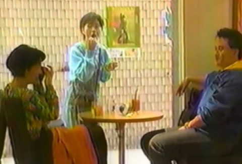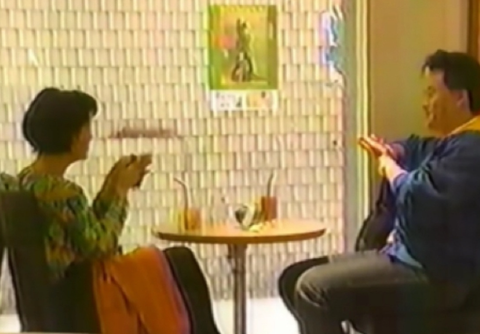 옆 테이블 여자(연기자)가 붙은 채로 마시고 있음