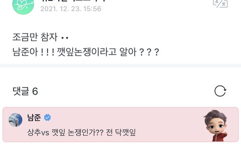 남준이는 여친이 친구 깻잎 떼주면 일단 약간 꽁기해지는데, 말은 못하고 그냥 조용히 남은 깻잎 한 입에 다 먹어버릴 것 같음