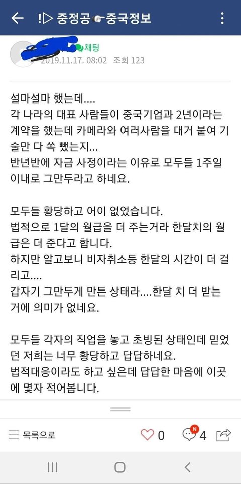 중국 기업을 믿고 옮긴 직장인