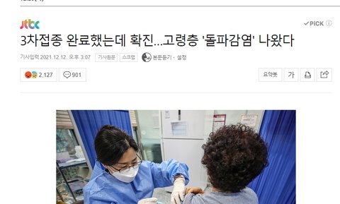 3차접종 완료했는데 확진…고령층 '돌파감염' 나왔다 : 네이버 뉴스 (naver.com)