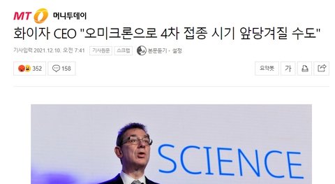 화이자 CEO "오미크론으로 4차 접종 시기 앞당겨질 수도" : 네이버 뉴스 (naver.com)