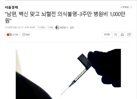 "남편, 백신 맞고 뇌혈전 의식불명···3주만 병원비 1,000만원" : 네이버 뉴스 (naver.com)