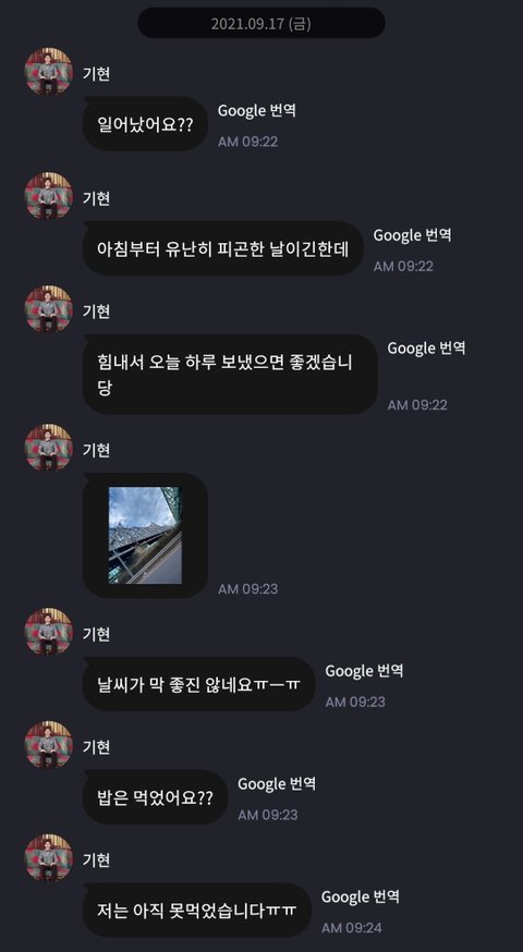 밥걱정 날씨걱정 거울샷이나 사진도 잘 보냄
