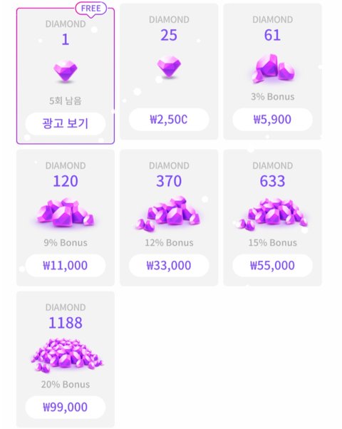 1보석에 100원정도라고 생각하면 됨