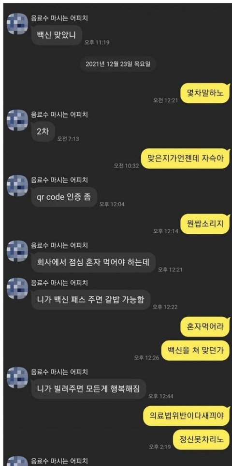 백신을 코로나땜시 맞것냐 혼술 혼밥안하려고 맞지 ㅋㅋ