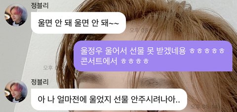 콘서트에서 울어서 안 된다고 다들 보냈구낭