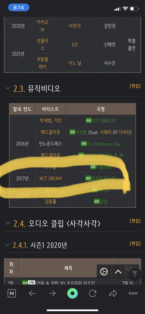 진짜 nct써있는 것도 충격먹었는데 그 뒤에 dream.. 또 그 뒤엔 마지막첫사랑.... 나 진짜 순간 10초동안 멈췄다.. 대박쓰