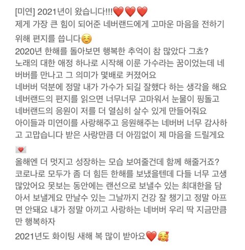 거기에 올때마다 오백자 써주고 간다 팬들이 해달라는 거 다 해주고 정말 올해 2021년 리플레이/엠카운트다운MC/소문의아이들호스트/별에서온퀴즈/겟잇뷰티살롱MC/딜리버리/어른연습생/러브캐처인서울 이것만 매주 미연이를 볼 수 있던 거고 이 외에도 예능 출연, 화보, 피처링 조미연 진짜 개열일함ㅠㅠ