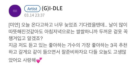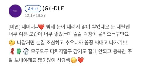 미연이 진짜 ㅠㅠ 팬사랑 너무 대단한 거 같고 큐브 개앂부ㅡㅇ신 회사같아 솔직히 멤버 논란+재판과는 별개로 팬마케팅은 해줘야하는 거 아니니ㅜ..? 그걸 왜 멤버들한테 떠넘기는 거 같지 특히 조미연 진짜 안 챙겨준 게 없어 제일 바쁜데도 늦게라도 다 챙겨주고 감동 준다.. 큐브가 안 챙겨주던 수능응원, 크리스마스 모두 미연이가 챙겨줬어 유큐브라는 팬카페가 있거든!?