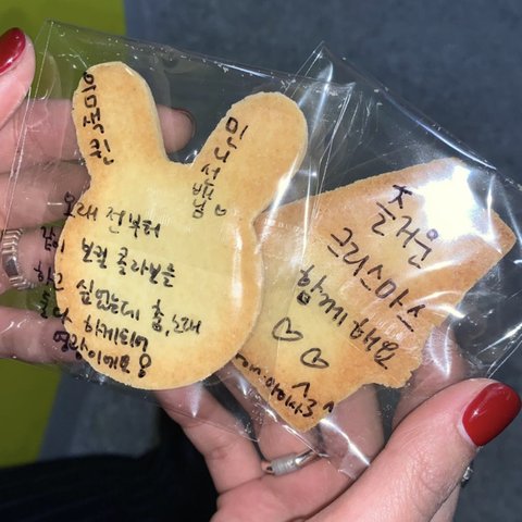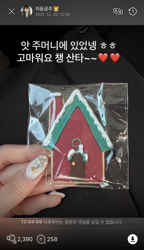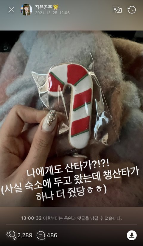 아이들 민니 선배랑 채연 선배한테도 클쓰마스 쿠키 돌림… ㅜㅜㅜㅜㅜ 진짜 너무 귀여워 ㅜㅜㅜㅜ 픽션 무대랑 갭차이에 죽을거같음