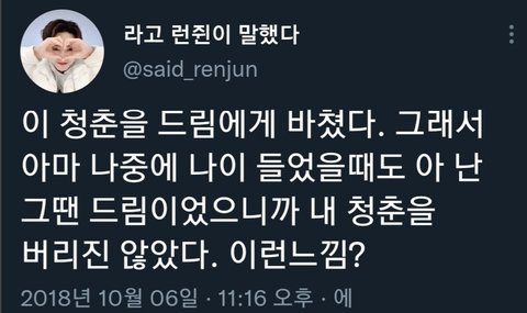 드림이들 다 행복하길바라.. 이 아이들의 청춘을 바쳤으니 그만큼 빛나길 바라.. 걍 수고롭기만하진 않았음 좋겠어