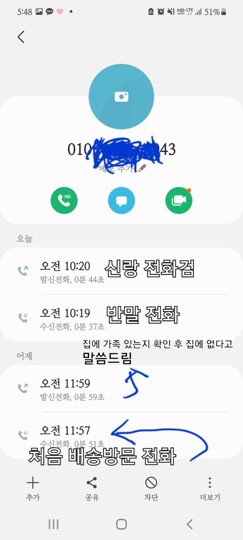 나: 집에 저는 없고 가족들 있으니까 대리수령 받으세요!!!!!( 전화 안그래도 어제부터 계속 뚝뚝 끊기고 잘 안들리는데 반말로 이름까지 들었으니 너무 화가 나서 목소리가 커졌습니다. )