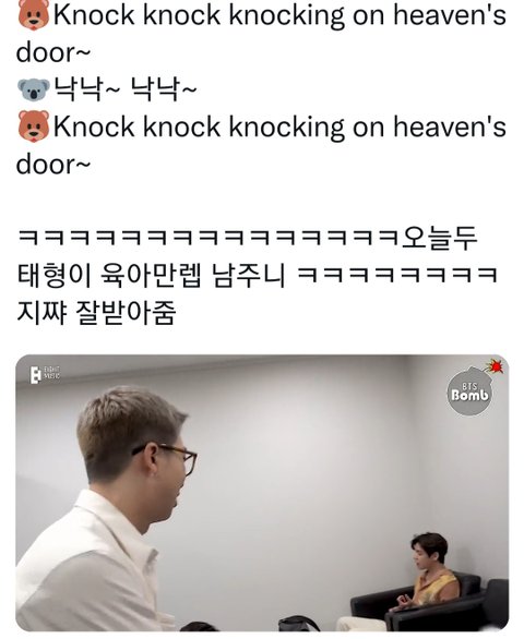 지금은 형라라 육아를 하지만 이런거보면 장꾸들 같아서 고라니 시절에 태형이랑 정국이랑 남주니랑 셋이 같이 혼났을거 같기도 하고 ㅋㅋㅋㅋㅋㅋ