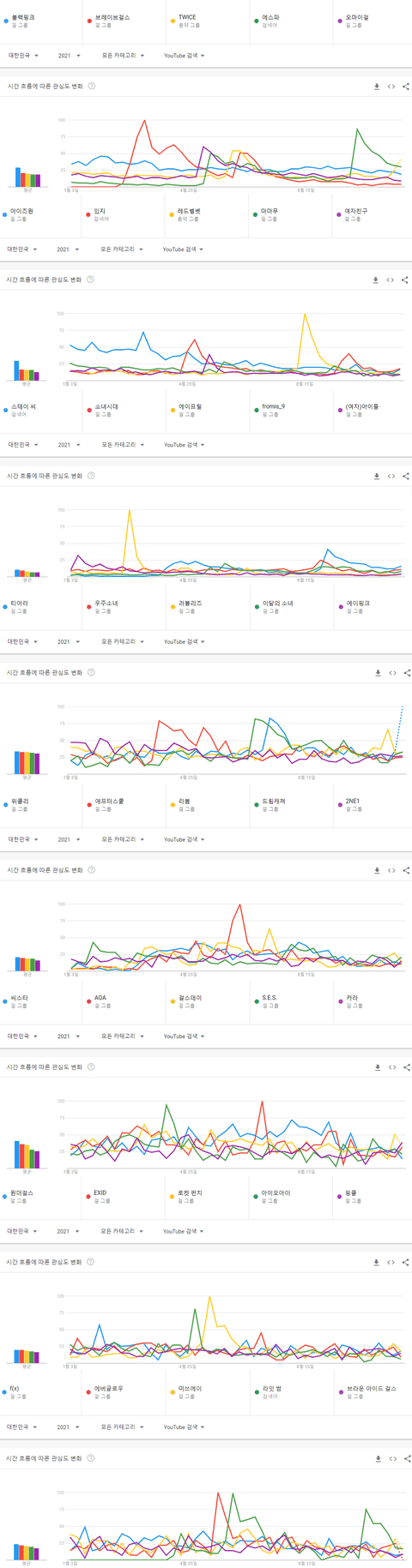 2021년 국내 유튜브에서 가장 많이 검색된 걸그룹 TOP40