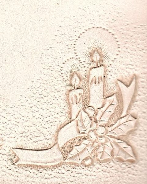 베지터블 생가죽에 크리스마스 디자인(촛불,종,포인세티아 잎 등)을 카빙하였습니다.(마디샤)