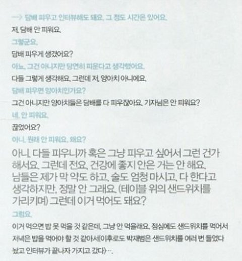 화보때문에 감독님이 잠깐 담배 피는척 연기해보라고 지시함