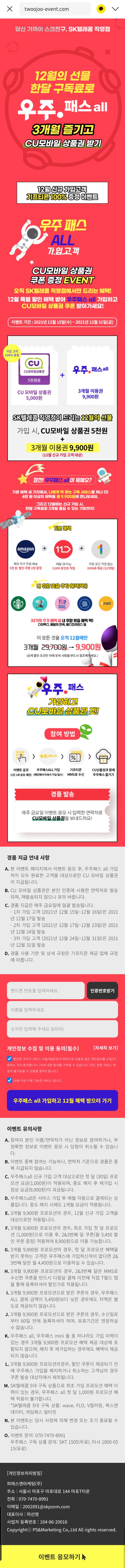 우주패스 가입시 CU 5천원 상품권 증정