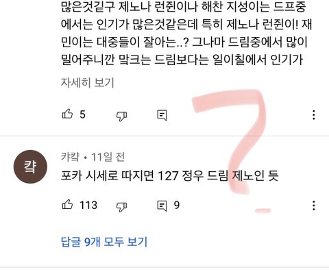 전체에선 더더욱 아님 메인도 아닌 런쥔 지성보다 못팜