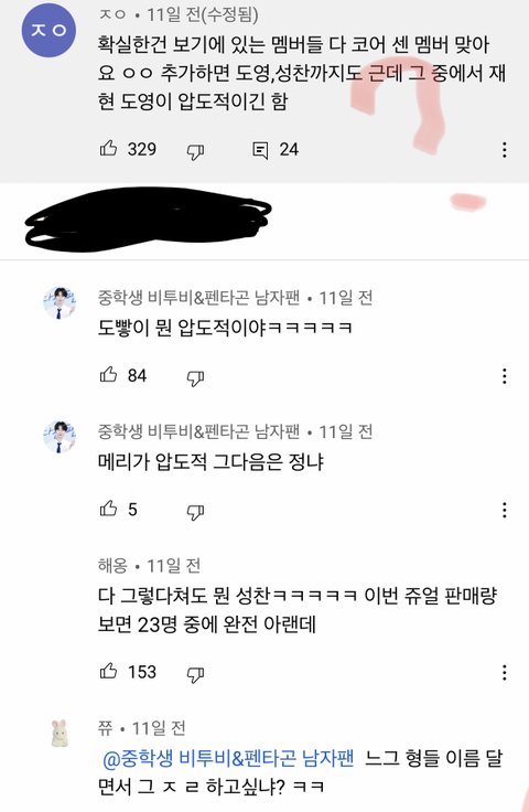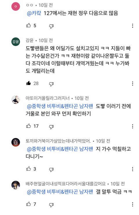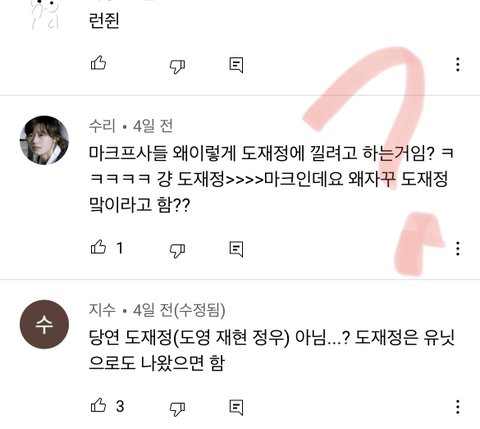 트위턴 드림팬들이 많은데 유투브는 127잼민이들 투성이노.. 뭔 도재정이고 재현은 맞지만 ㅈㅇㄷㅇ은 왜자꾸 끼팔해서 제노재민은 쏙 빼는지 걍 웃기고 ㅋㅋ마크 후려쳐서 뺄려고 아득바득하는데 이번에 똑같이 참여해도 개발림ㅋㅋㅋ