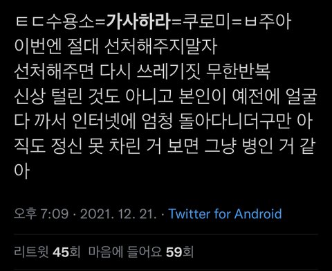 오죽하면 이런 가사하라악개짓 만행 박제계정도 있음