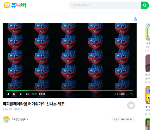 아이들이 보기에 너무너무 무서운 영상인것 같아요 제가봐도 너무 무서운데 제목이 허기워기의 신나는 체조 라는데솔직히 이게 체조인가요?기괴하고 토할것같아서 바로 컴퓨터 껐네요