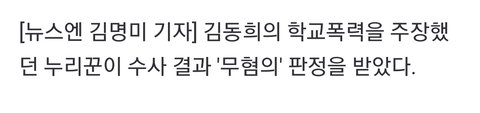 그나마 이게 확실히 나온 기사고 나머지는 전부 김동희 학폭 무혐의 받았다 ㅇㅈㄹ임ㅋㅋㅋㅋㅋㅋㅋ