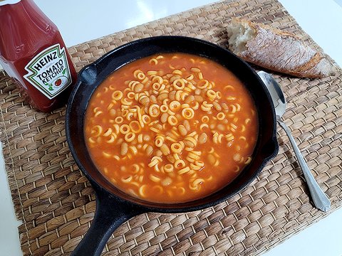 통조림 깡통 두개를 섞어서 끓인 후 토마토 케첩만 뿌린 것을 요리라고 할 수 있는지는 의문이지만,