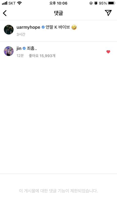 헐 석지니 인별 댓글