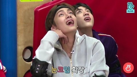 뷔, 진 무의식 중에 같은 포즈 같은 행동ㅎㅎ 둘이 이정도면 최소 사촌아니냐,, 아 둘다 광산김씨지^^... 사촌은 맞넹!!