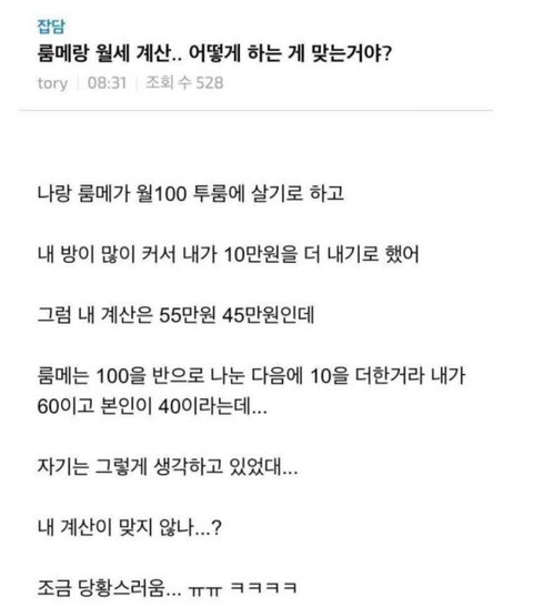 10대판이 화력이 제일 좋아서 여기에 씀 글쓴이가 맞다 VS 룸메가 맞다로 페북에서 피터지게 싸우는 중