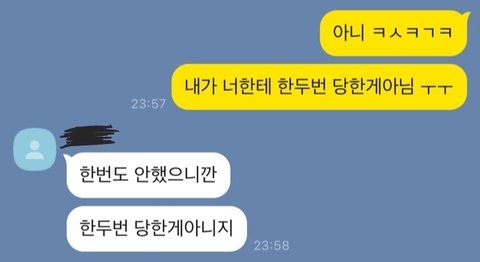 존내웃겨..ㅋㅋㅅㅋㅅㅋㅅㅋㅋ 내 남사친이랑 나임 근데 참고로 한두번 당한게 아닌거 맞음;; ㅈㄴ 맨날 내가 뭐하면 지도 하겠다 하면서 나 다 시켜놓고 자기는 안함
