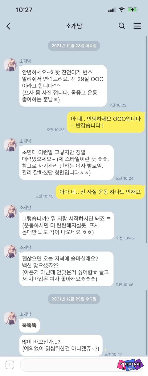 카톡 대화할 때마다 '괄호'에 자기 진심을 써서 보내는 소개팅남