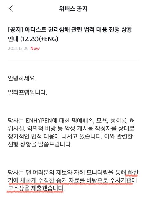 엔하이픈 고소 진행 공지뜸