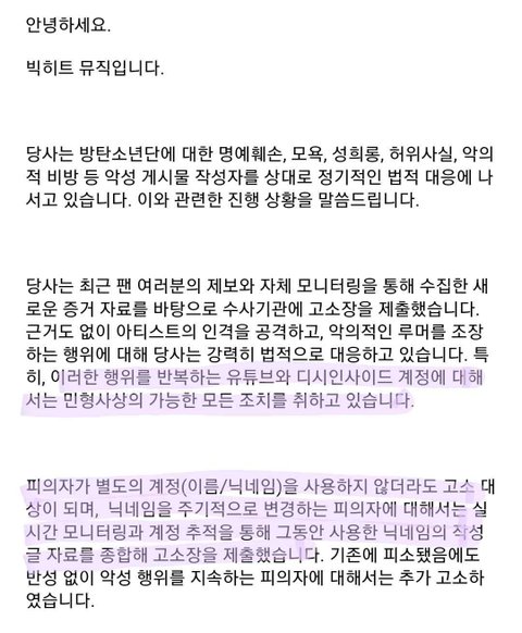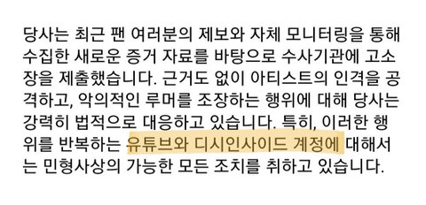 '유튜브','디시인사이드' 직접언급, 진행상황, 금액, 방안 등