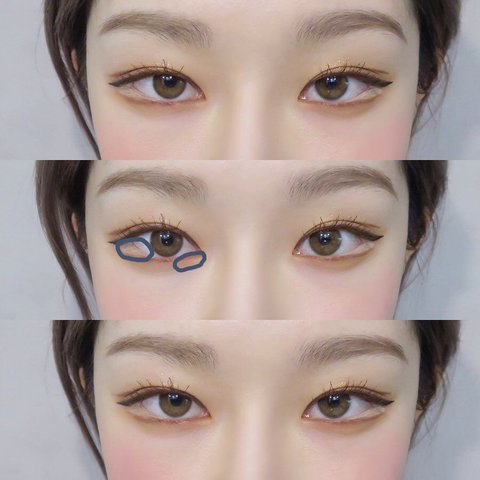 내가 말한 밑 점막이랑 눈 앞머리는 사진에 동그라미 친 부분이야! 사진처럼 채워주면 돼