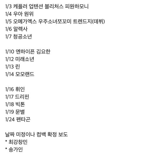 1월 컴백 라인업