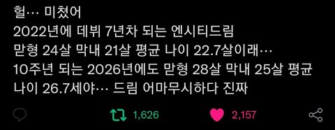 데뷔 7년차에 평균 나이 22.7세인 그룹 엔시티드림