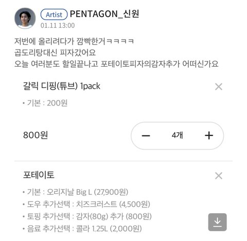 평소 팬들 사이에서 알아주는 감자러버 펜타곤 신원