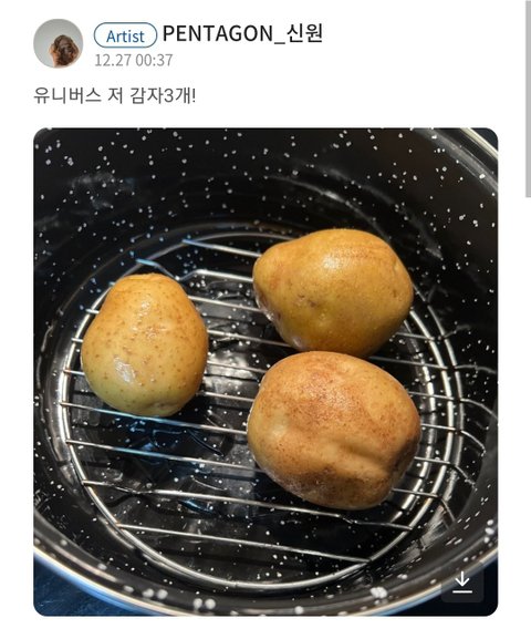 우리들은 컴백 트레일러 떴다고 앓고 있는데 이와중에 고신원은 감자 3개 자랑하고 있음ㅋㅋㅋㅋ