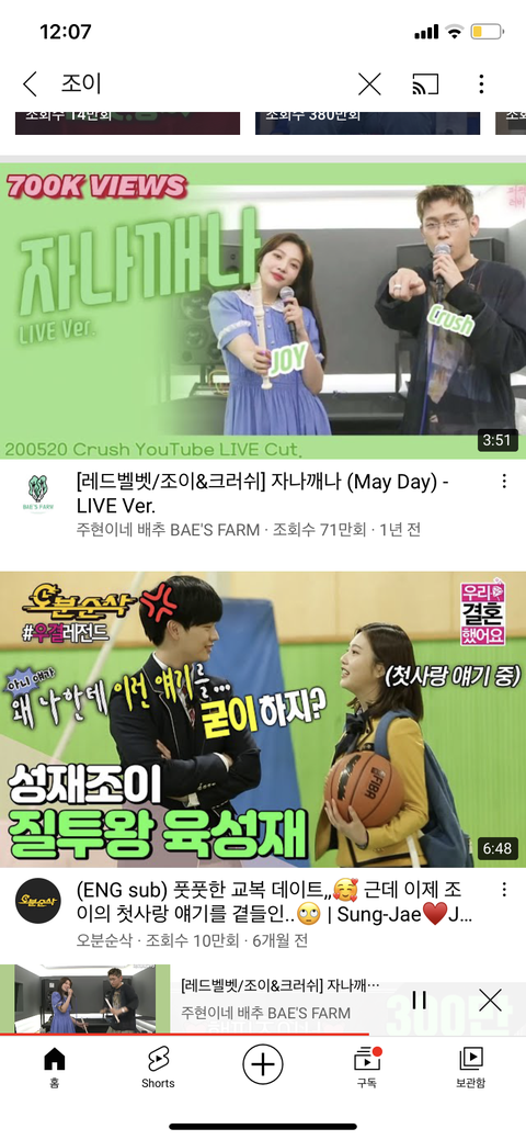 아… 조이 연기한다고 유튭에 “조이” 검색했는데.. 유튭 눈치챙기자 제발
