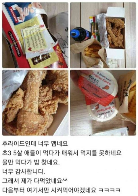 후라이드인데 매워서 우리 애들이 먹질 못하네요