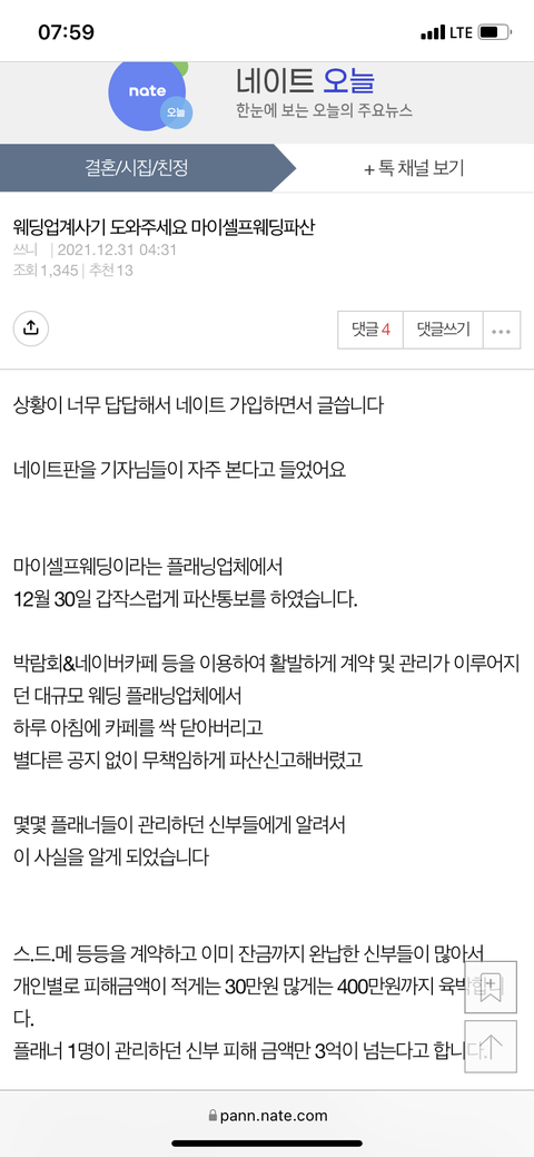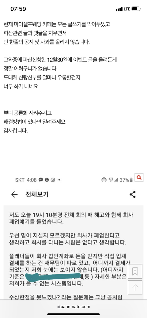 그와중에 마*셀프웨딩은 파산하는 당일날까지