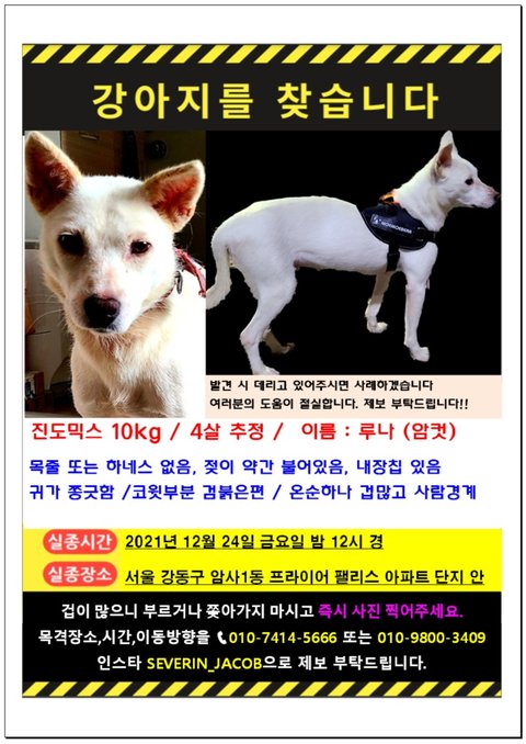 12/24 크리스마스 이브 자정에 실종된 강아지를 찾고있습니다.